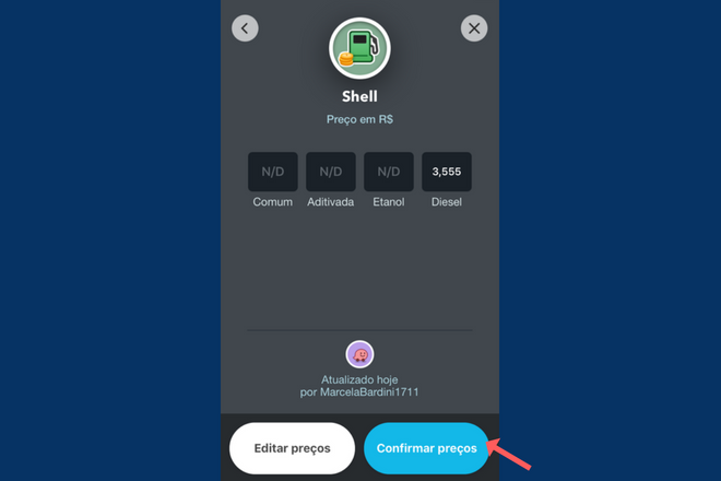 É possível contribuir apenas confirmando o preço que está sendo cobrado na bomba ou indicar um novo preço