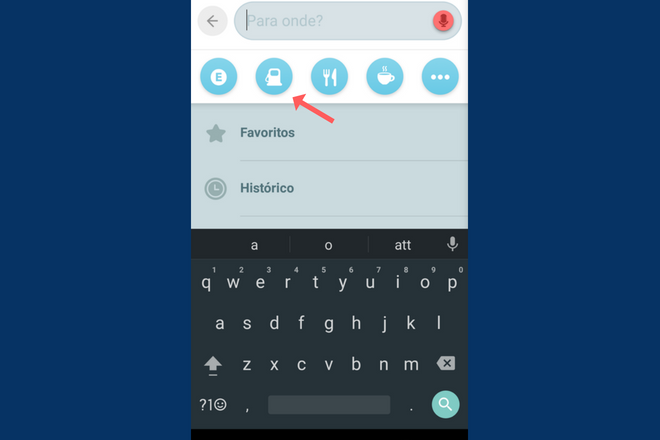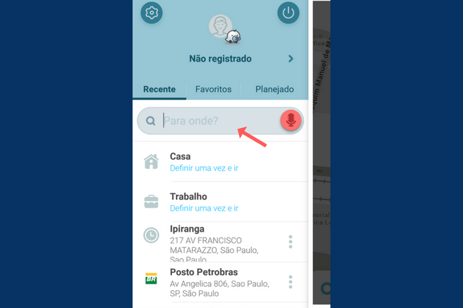 Abra o aplicativo e clique sobre na barra onde o endereço de destino deve ser digitado