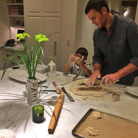 É comum ver Tom Brady colocando a mão na massa. Nas redes sociais, Gisele já falou da habilidade do marido na cozinha.