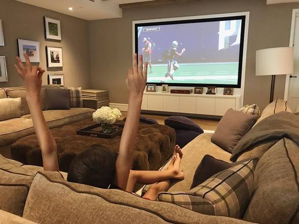 A família torce junto quando Tom Brady entra em campo para defender o New England Patriots