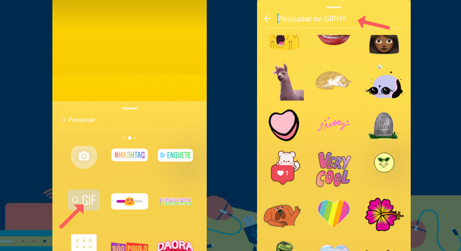 Os GIFs funcionam como um sticker com a diferença que os desenhos têm movimentos