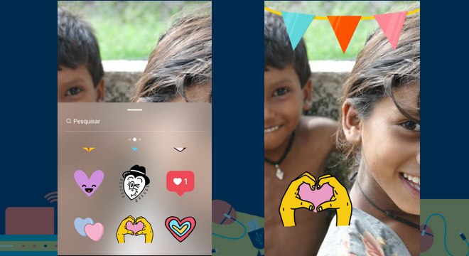 Cole stickers nas suas fotos para deixar tudo muito mais legal. Além dos modelos criados especificamente para o Instagram, também há uma grande quantidade de emojis.