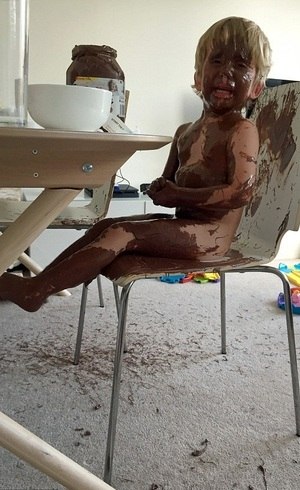 Um episódio um tanto inusitado envolvendo mãe e filho está dando o que falar na Inglaterra. Clare Fallon, de 32 anos, deixou o pequeno Harrison, de três, brincando sozinho por cerca de vinte minutos enquanto secava o cabelo, no andar de cima da casa em que mora. Quando voltou, ela teve uma surpresa: encontrou o garotinho coberto de creme de avelã.