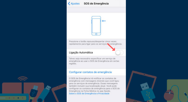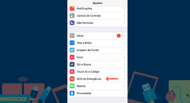 No caso do iPhone, a função é válida para modelos com o sistema operacional a partir do iOS 11. Abra as configurações e toque na opção SOS de emergência