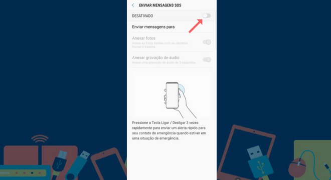Em seguida, toque em enviar mensagem SOS, que estará desativada no seu smartphone