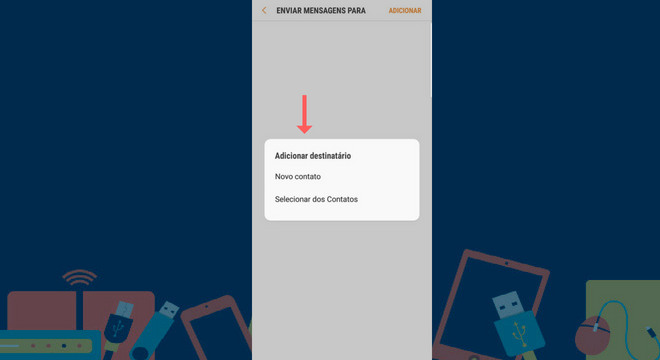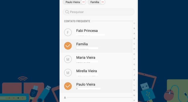 Toque sobre os nomes da lista para adicionar um por um. Selecione quantos contatos achar preciso