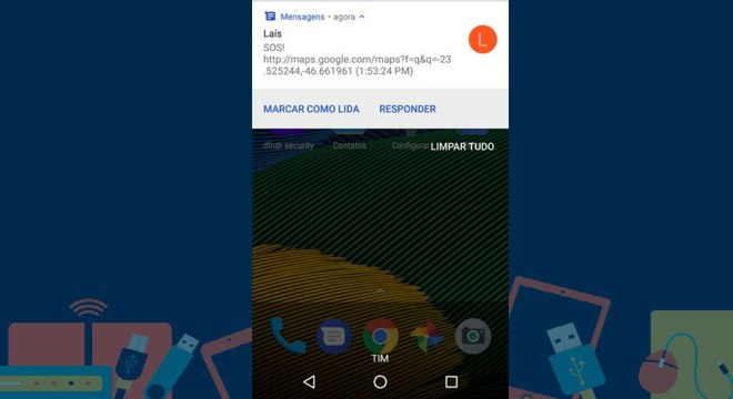 Os contatos de emergência receberão uma mensagem com pedido de socorro e também a localização
