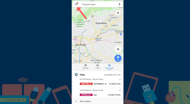 Abra o aplicativo do Google Maps no celular e toque nas três barrinhas no canto superior direito para abrir o menu