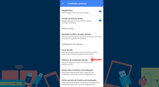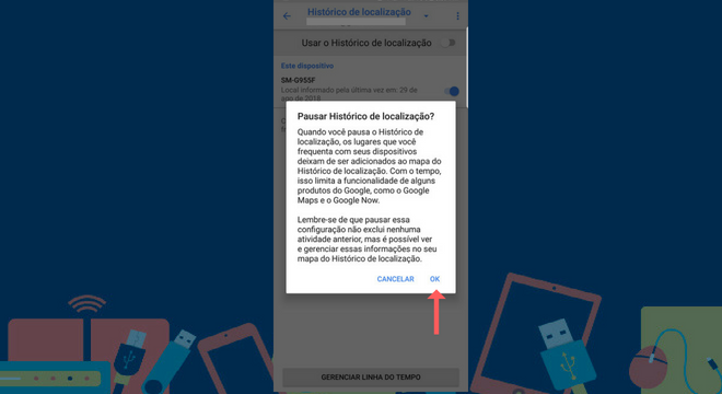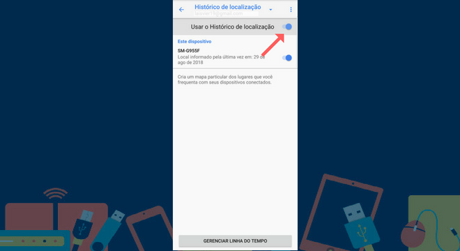 O próximo passo é desativar a chavinha azul ao lado de usar o histórico de localização