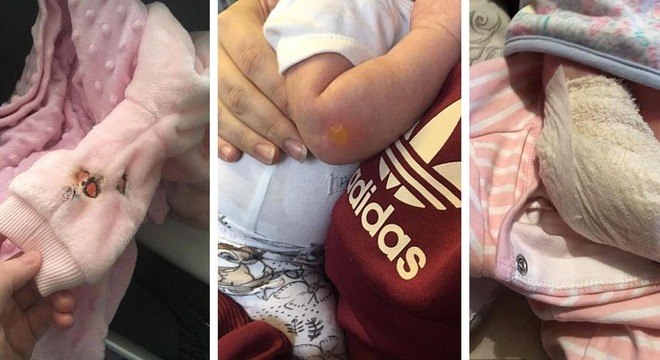 A ponta do cigarro chegou a queimar até um casaquinho peludo da bebê antes de atingir a pele. “Foi tudo muito rápido. Quando vi, já havia uma bolha começando a aparecer. Então eu a levei até o apartamento e a coloquei debaixo de água fria. Minha bebê ainda está inquieta e com um pouco de dor. Mas tivemos sorte que foi só no bracinho, pois poderia ter sido outra parte mais sensível do corpo”, contou a mãe ao Daily Mail.