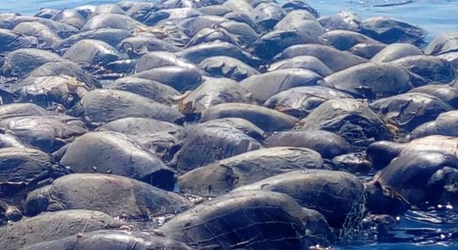 As imagens compartilhadas pela Defesa Civil de Oaxaca, no México, são devastadoras: incontáveis tartarugas mortas flutuando no mar.