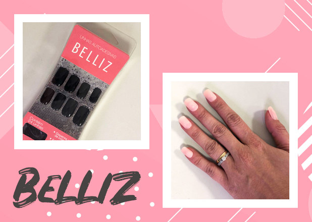 Aplicação: as unhas da Belliz são autoadesivas, portanto, dispensam cola - o que é maravilhoso na hora de aplicar. Um ótimo ponto é que embalagem vem com diversos tamanhos laterais, para dedos magros e gordinhos, e aumenta as chances de conseguir um bom resultado.