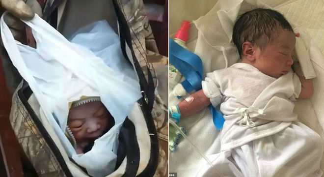Foto: Reprodução Daily Mail – O bebê no momento em que foi encontrado