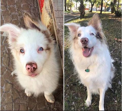 O border collie Theodoro mostrou que uma coisa não mudou ao crescer, sua beleza continua admirável