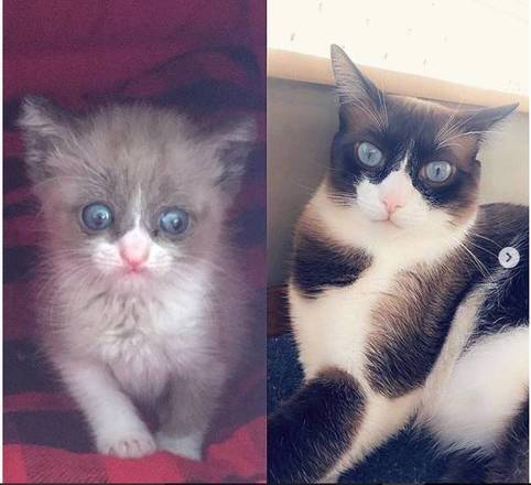 Essa gatinha, que parece ser de pelúcia, mudou muito em apenas 8 meses de diferença entre a primeira e a segunda foto