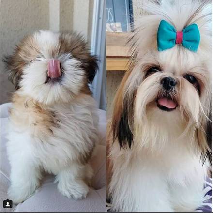 Essa shih-tzu ficou ainda mais graciosa com o tempo. A primeira foto com ar sapeca deu lugar para uma cachorra cheia de estilo