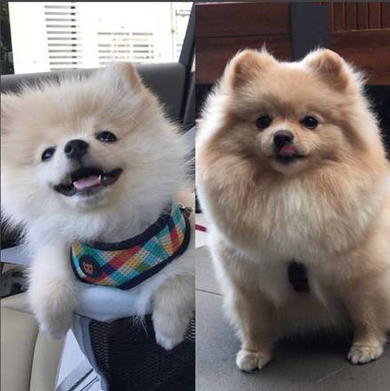 A Pedrita é uma lulu da pomerânia. Com diferença de 1 ano entre uma foto e outra, a fofura é a mesma
