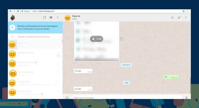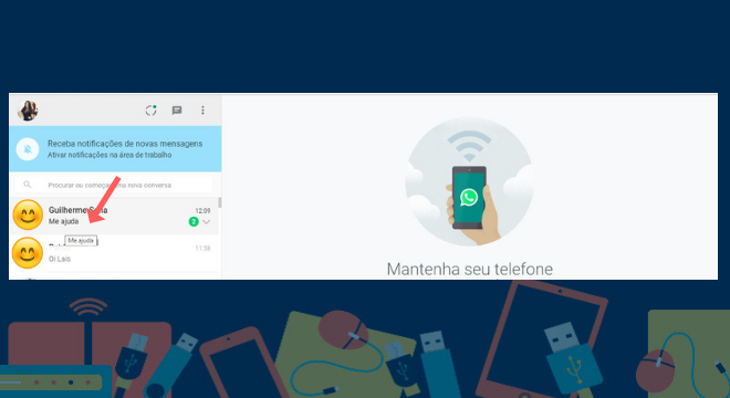 Uma das formas de ler uma mensagem pelo WhatsApp web sem notificar a outra pessoa é bem simples. Coloque a seta do mouse sobre uma conversa e, sem clicar em nada, aguarde uns instantes. Assim, o conteúdo do último envio será exibido em um pequeno box e não será preciso abrir a conversa