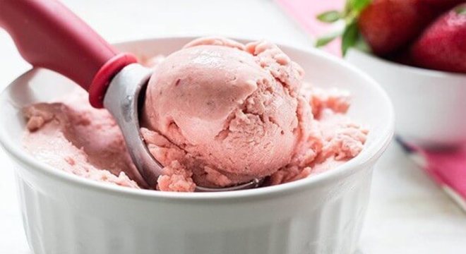 Sorvete de Banana e MorangoUma das receitas mais simples dessa lista. É além de fácil acessível, já que são frutas que geralmente temos em casa. Se quiser pode substituir por outras.