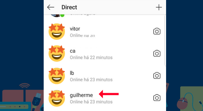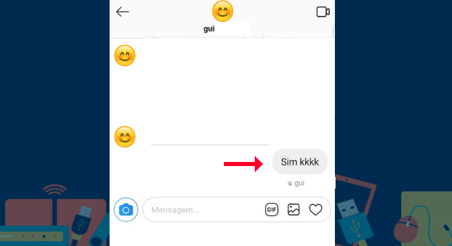 Com o o direct aberto, selecione a conversa que deseja apagar uma mensagem já enviada