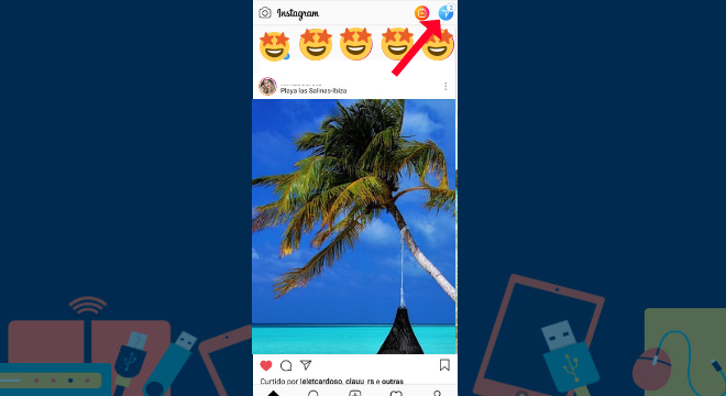 Ao abrir o aplicativo, no rolo das publicações, clique na seta que estará no canto superior direito da página
