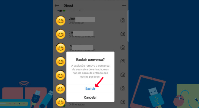Para apagar uma conversa inteira, entre no direct, escolha uma conversa e depois toque e segure