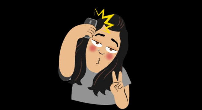 A personalização do sticker incluí formato de rosto, design de sobrancelha, cabelo e boca. Basta salvar para adicionar as modificações
