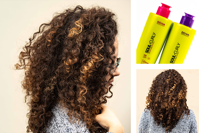 Rebeca Tosta usou a linha Soul Curly, da DoHá, indicada para cabelos crespos, cacheados e ondulados.