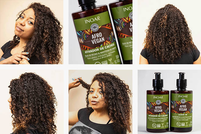 Wendy Cândido tem os cabelos crespos e experimentou a linha Inoar Afro Vegan. O leva-in (R$ 26,90) é indicado para cabelos ondulados, cacheados, crespos e afros. Tem fórmula botânica para manter a saúde da fibra capilar. O que mais chamou a atenção de Wendy foi o cheiro.
