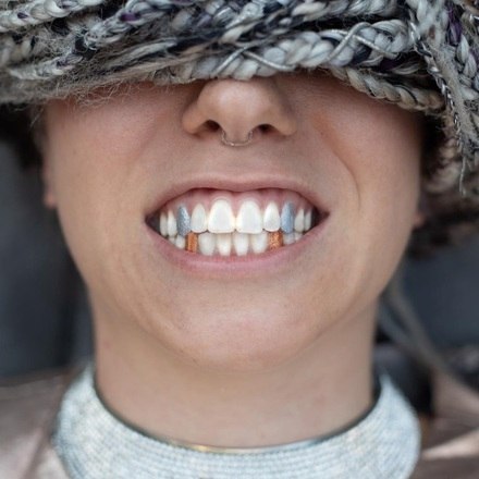 A marca está encorajando as pessoas a conseguir essa aparência de dente manchado, em vez do branco-perolado, de propósito