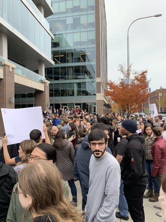 Na cidade de Chicago, nos EUA, os funcionários do buscador também protestaram contra o assédio no Google