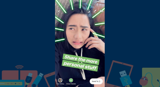 Os posts podem ser criados normalmente e depois compartilhados no "Close Friends". Além de fotos e vídeos, também é possível fazer enquetes e brincar com os filtros