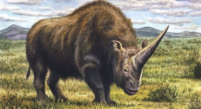 Conhecido como "unicórnio da Sibéria", o animal tinha um longo chifre no nariz e vivia nas pradarias da Eurásia, a massa de terra que engloba os continentes europeu e asiático.