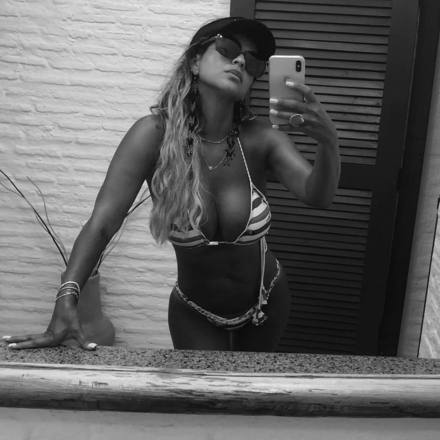 Nana Magalhães usou o Instagram neste sábado (29) para compartilhar uma série de fotos em que aparece de biquíni em frente a um espelho. Nos cliques, a mulher de Tiririca, que curte dias de praia, exibiu a barriga chapada e, nos comentários, recebeu dezenas de elogios