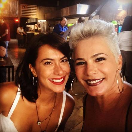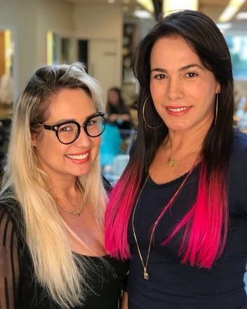 Débora, atualmente com 50 anos, também exibiu o novo look em uma foto ao lado da filha, Jaqueline, de 33