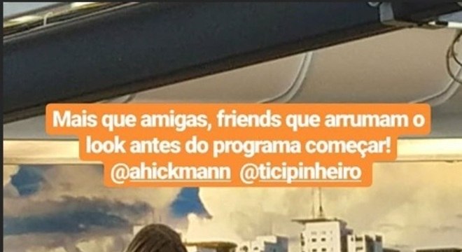 Tici compartilhou a foto de Ana ajudando-a a fechar a calça minutos antes do programa começar. Ao mostrar a foto ela disse: “A minha calça não fecha mais! Kkk”.