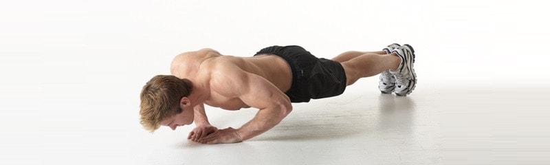 Flexione o braço para baixo dobrando os cotovelos de modo que seu peitoral chegue até próximo do chão. Desça lentamente durante a flexão. Permaneça com o abdômen e os glúteos contraídos e realize a extensão dos braços retornando à posição inicial. O exercício consiste em erguer o próprio corpo apoiado nas mãos e na ponta dos pés.