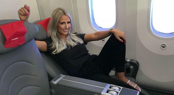 A blogueira Naomi Kisted é da Inglaterra e paga por um assento mais caro para si no avião, enquanto seu marido Haydn, seu bebê Rocco, três anos, e sua filha Fleur, nove anos, viajam de econômica.