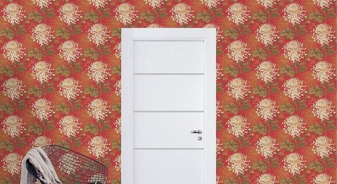 Materiais Porta; 3 peças de dobradiças; Parafusos; Lápis; Martelo; Trena; Chave de fenda; Calço; Formão.3. Decoração clean com porta branca e papel de parede – Foto: Pormade