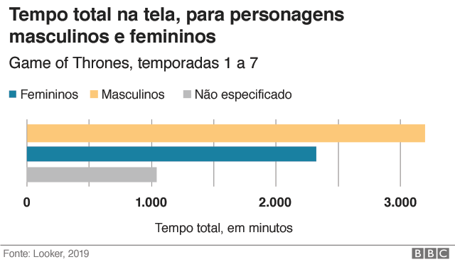 "Não importa como você recorte os dados, ainda verá que as personagens mulheres tinham menos visibilidade, consistentemente. A percepção do público é de que as personagens femininas de GoT são fortes e proeminentes, embora elas tenham menos tempo de tela e menos oportunidades de falar. Será que mulheres poderosas são tão raras (nas telas) que deixam uma impressão tão forte nas nossas mentes, de modo a se destacar mesmo estando menos presentes (que os homens)?", ela questiona.
