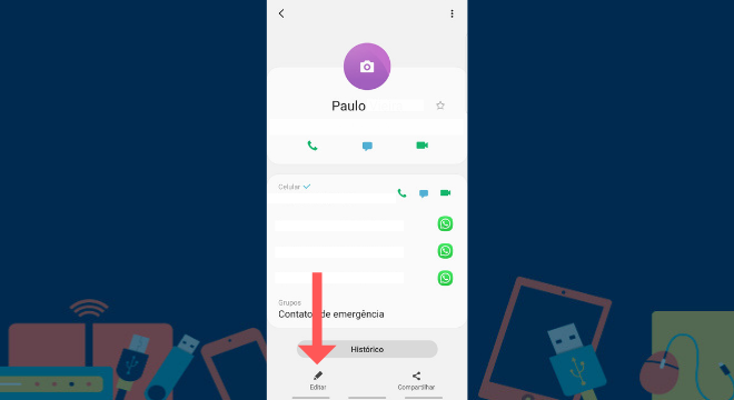 No aparelho Android, abra a agenda do celular e selecione um contato para alterar a vibração. No parte de baixo da tela, toque em editar