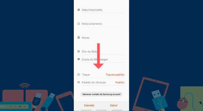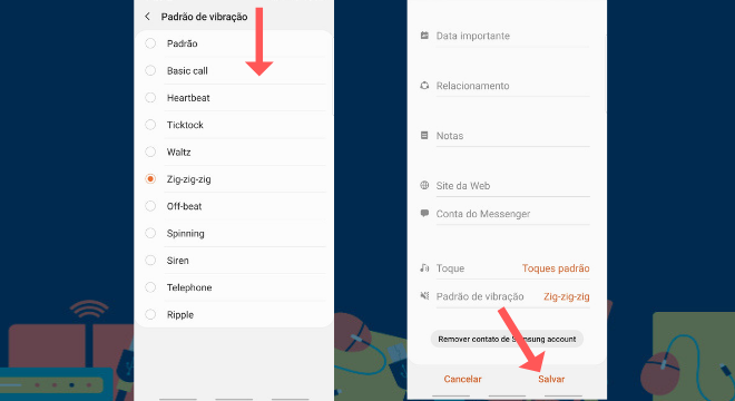 Nessa aba é possível customizar um padrão de vibração. Assim, a pessoa poderá criar um toque exclusivo para aquele contato. Depois, toque em salvar