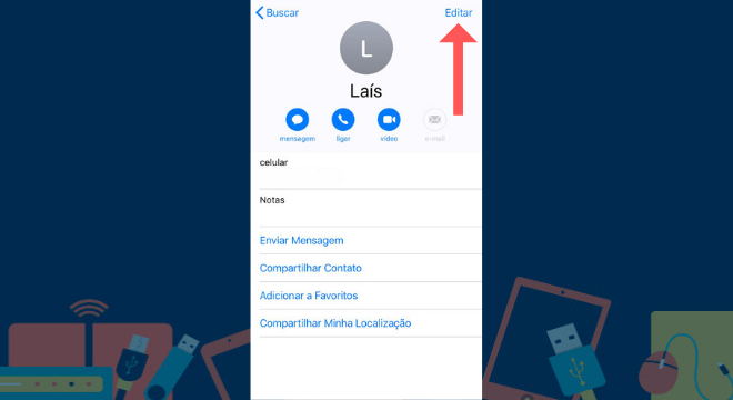 A modificação também pode ser feita no iPhone. Selecione um contato para alterar a vibração e depois toque em editar