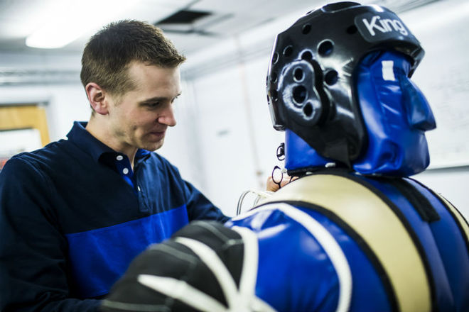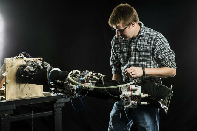 Os estudantes desenvolveram um programa de computador que controla os movimentos do robô inflando determinadas parte