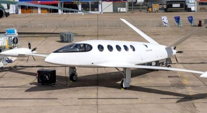 A empresa israelense Eviation diz que a aeronave, chamada Alice, poderá transportar nove passageiros em uma viagem de até 1.040 km de distância e a 440 km/ h.