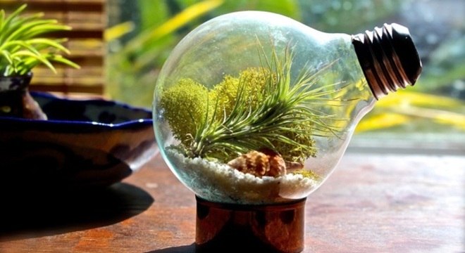 7. Terrário na lâmpada, DIY baratinhos para decorar sua casa. Fonte: Pinterest