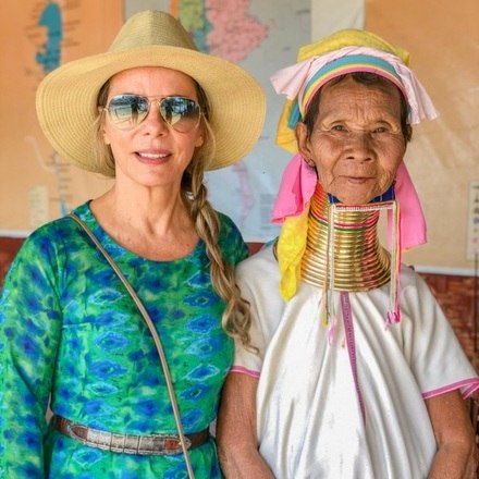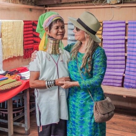 "Mesmo não contribuindo e me recusando a fazer essa visita, encontrei muitas mulheres girafa no caminho, fiz amizade com elas e as ajudei. Elas são genuinamente amorosas e de muita doçura. Tentamos nos comunicar naquela linguagem universal do abraço e sorriso, com pequenos gestos que ajudaram o entendimento"