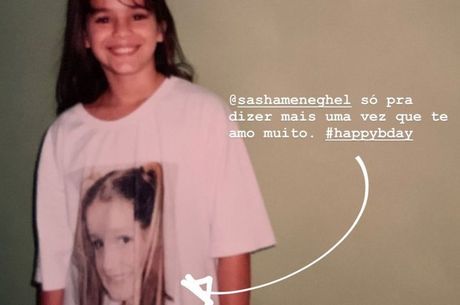 Longe das comemorações de aniversário de Sasha em Fernando de Noronha, a atriz vibrou pela chegada dos 21 anos da amiga com foto antiga no Instagram. No clique de quando ainda era criança, a famosa chamou atenção por estar usando uma blusa com rosto da filha de Xuxa estampado.