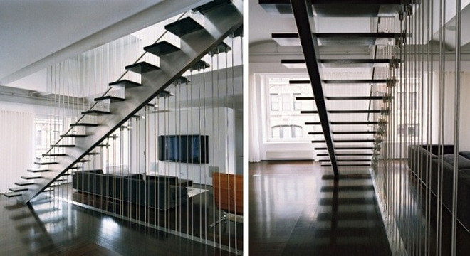 9. Escada flutuante apoiada por cordões finos que lhe dão estabilidade. Fonte: Homedit