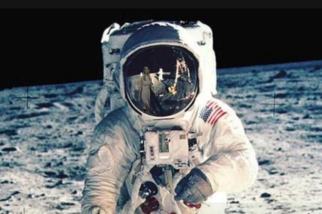Na montagem do dia em que o homem pisou na Lua, Ivanka — que é formada em economia e fundou uma grife que leva seu nome — aparece como um reflexo no capacete de Neil Armstrong